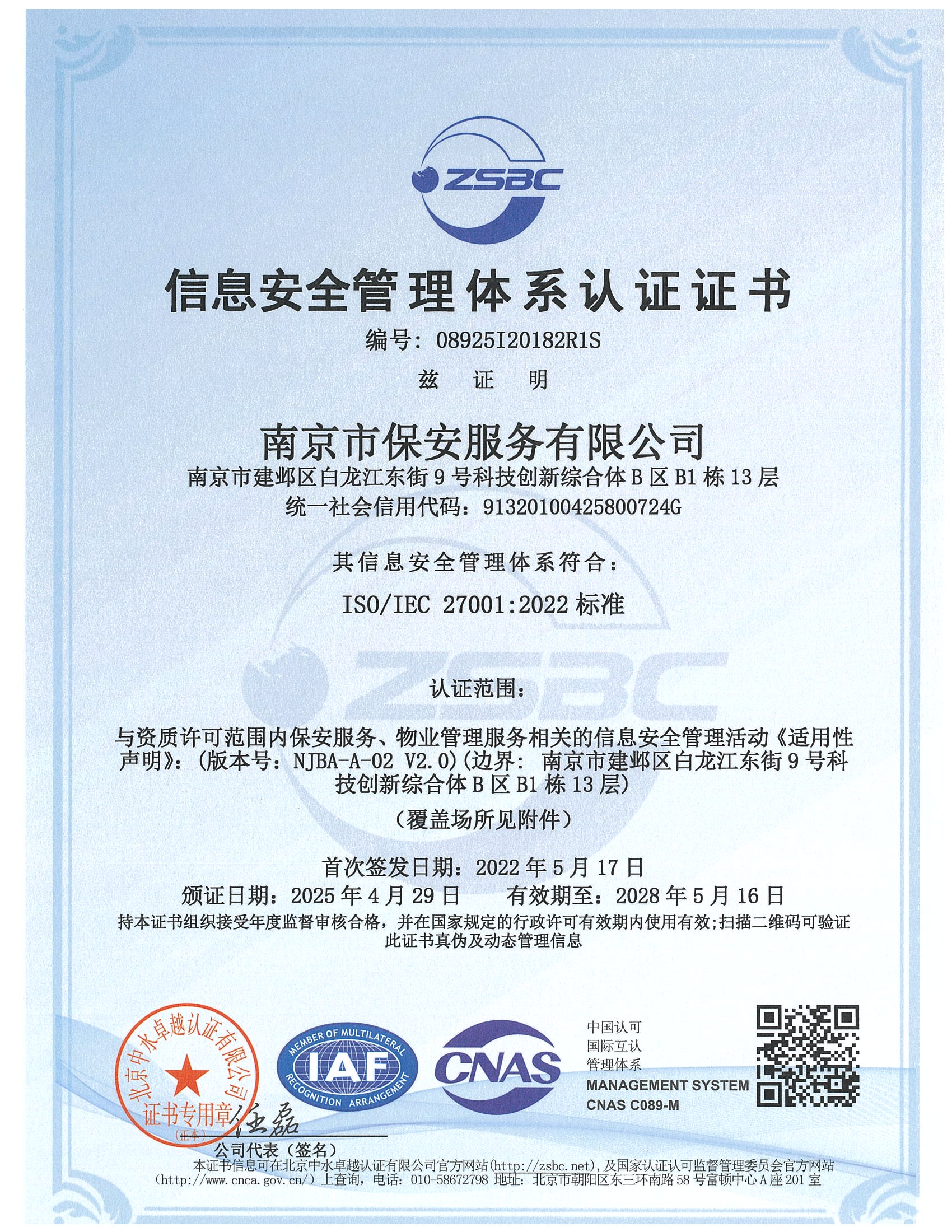 南京市保安服務有限公司(原南京市保安服務總公司)成立于1987年4月,是一個有著悠久安保經營歷史和安保經驗沉淀的大型國有保安企業(yè),現(xiàn)為中國保安協(xié)會常務理事單位,江蘇省保安協(xié)會常務理事單位,南京市保安協(xié)會副會長單位,江蘇省一級保安服務公司。